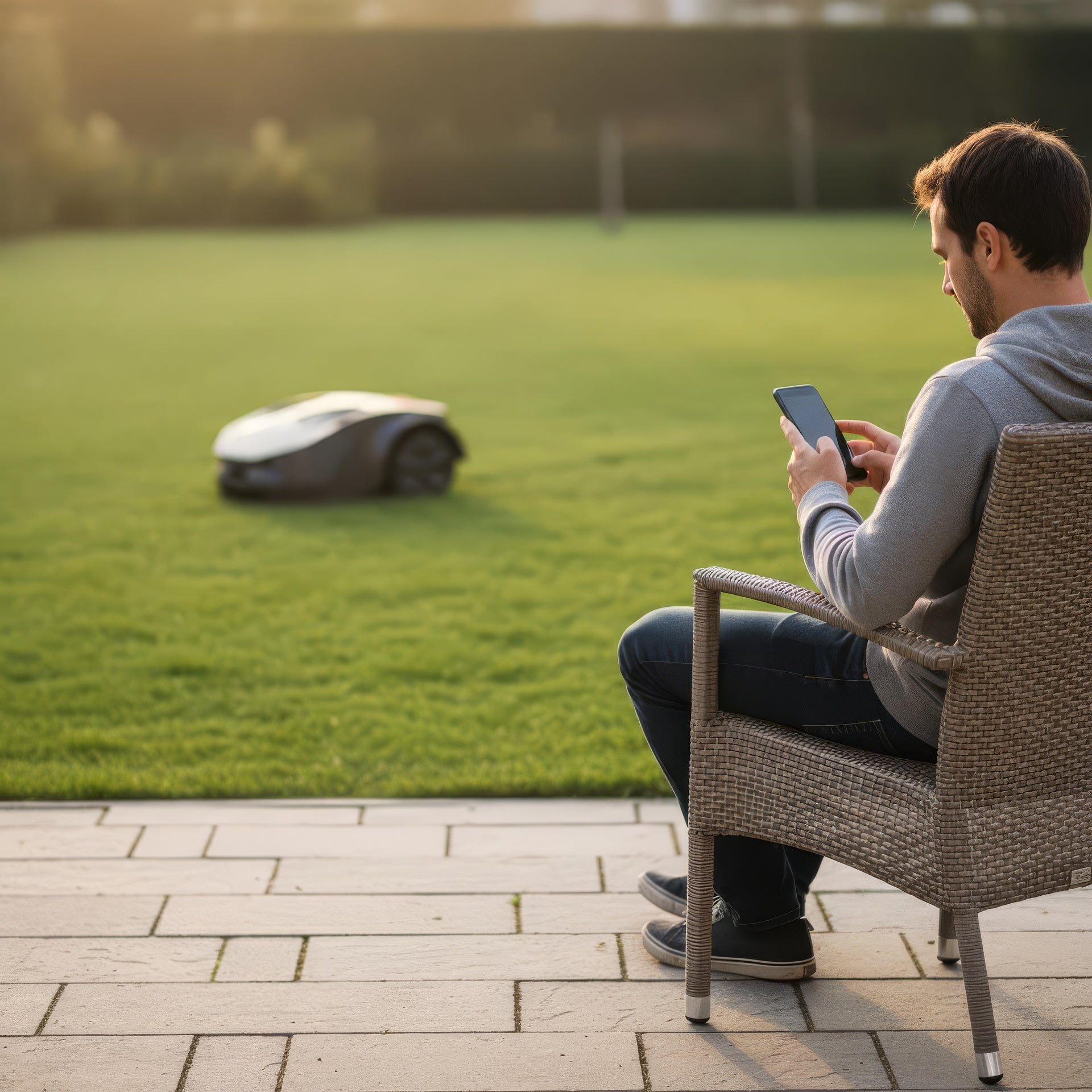 Leaves station on your scheduled time. GPS maps the lawn into 24m² sections, mowing each at three angles (90°, 45°, 135°). Complete coverage, not random bouncing.